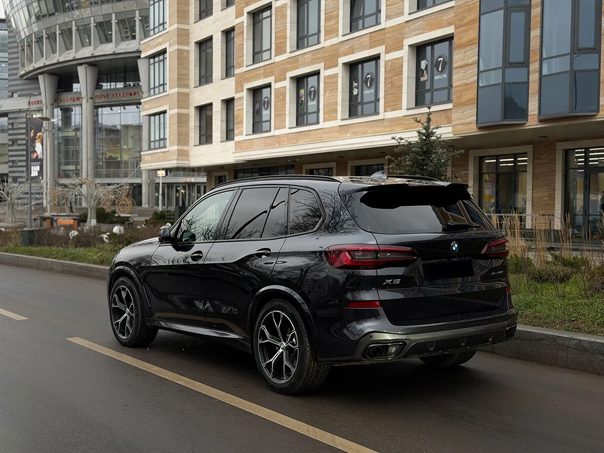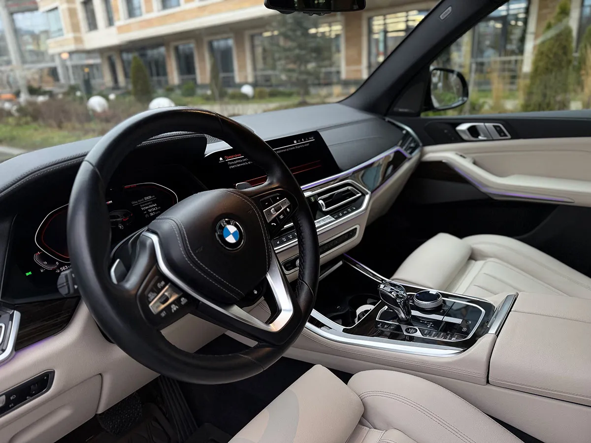 BMW X5 40i — это элегантный и мощный кроссовер, сочетающий спортивную динамику и премиальный комфорт, с агрессивной внешностью, подчеркнутой огромными дисками и лазерными фарами, а в салоне — цифровые панели, уютные кожаные сиденья с массажем и подсветка, создавая атмосферу роскоши и технологичности для тех, кто ценит мощь, качество и стиль в каждом движении.