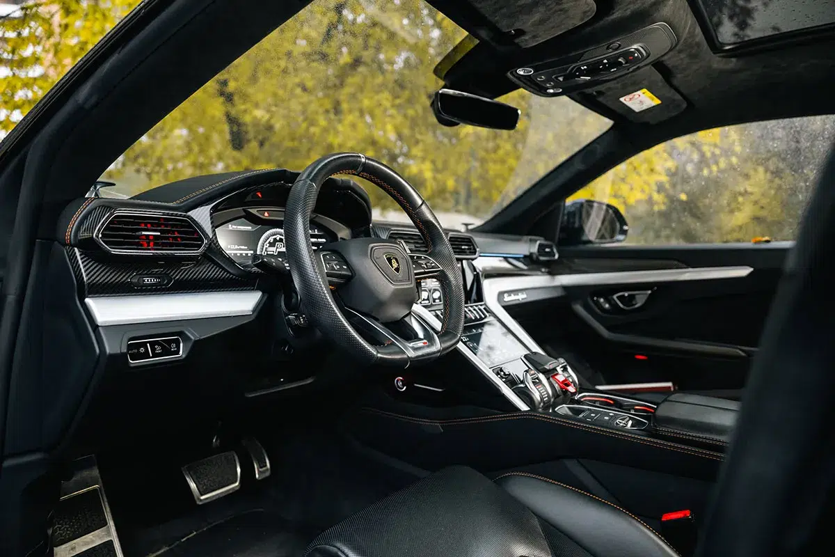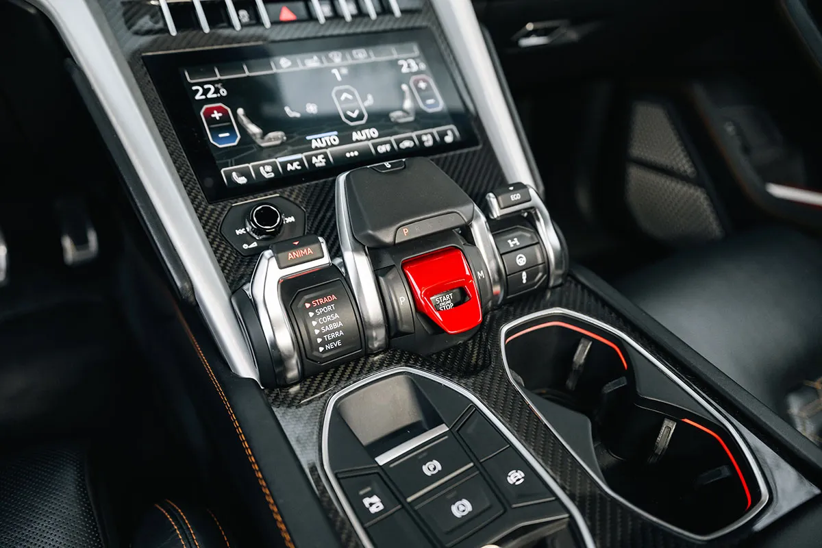 Lamborghini Urus — это дерзкий суперкроссовер, сочетающий агрессивный, клиновидный дизайн с мускулистыми формами и Y-образными элементами, характерными для Lamborghini. Он выделяется особой крышей купе, широкими колесными арками, массивными воздухозаборниками и уникальными фарами, создавая образ «души суперкара в кузове внедорожника». Внутри – авиационный стиль, три TFT-дисплея, премиальные материалы и возможность полной персонализации, а под капотом скрывается мощный V8, готовый к экстремальным скоростям в режиме «Corsa».