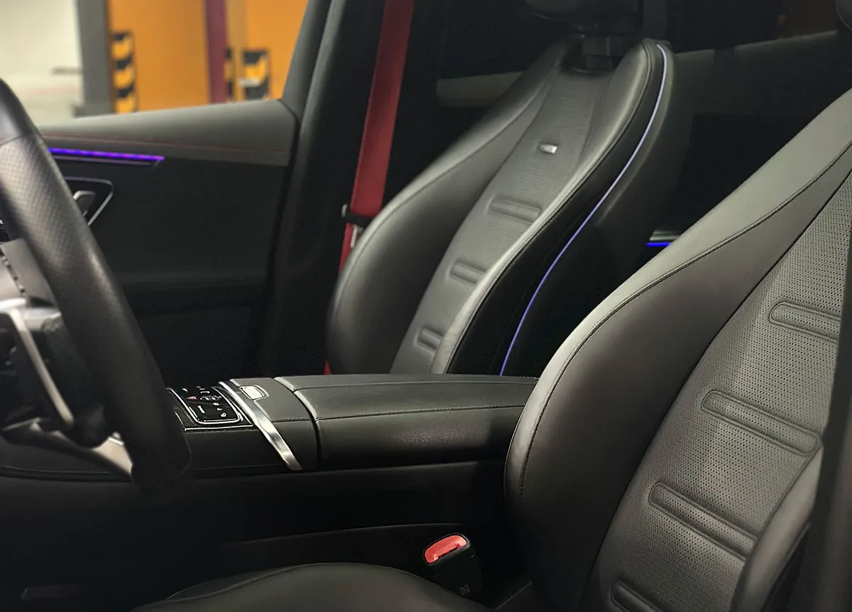 Внутри автомобиля царит атмосфера роскоши и технологичности. Салон отделан высококачественной кожей, а сиденья оснащены электрорегулировкой, подогревом, вентиляцией и функцией массажа.